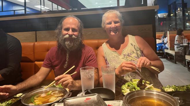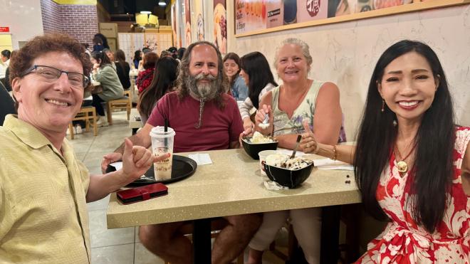 After dinner we went to Meet Fresh, which specializes in towering shaved ice desserts (in this picture we’ve already knocked down the towers). We split one, Rick had a milk tea, and Hong Mei attempted to demolish one all on her own.