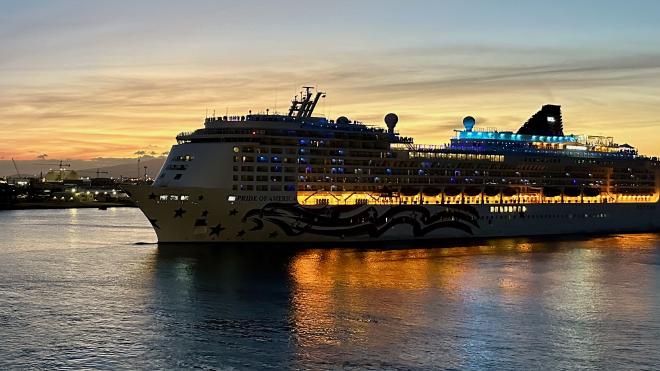The Princess Cruises Pride of America was moored at the other cruise dock, and pulled out just a few minutes ahead of us.