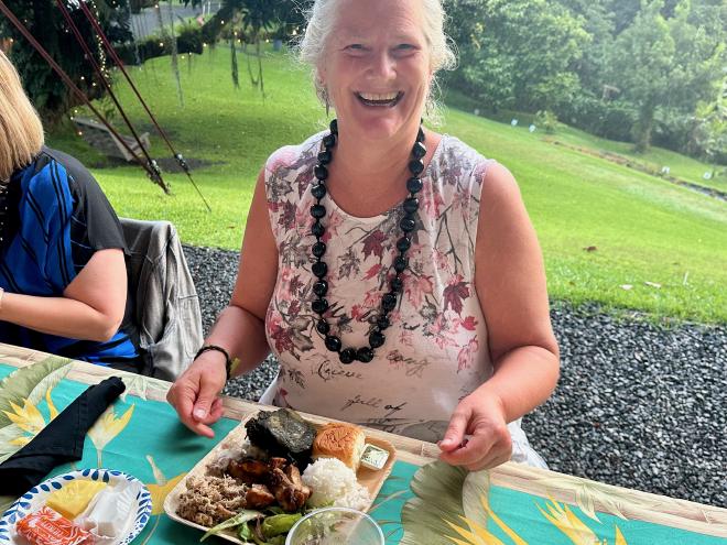 Being herself a dancer, Karen really wanted to see some traditional hula and the best way to do that was at a luau. After a bit of internet research we decided that a smaller, more intimate experience would suit us best, so we booked tickets for the luau at Nutridge Estate, in Pu‘u ‘Ualaka‘a State Wayside, in the hills overlooking the city.