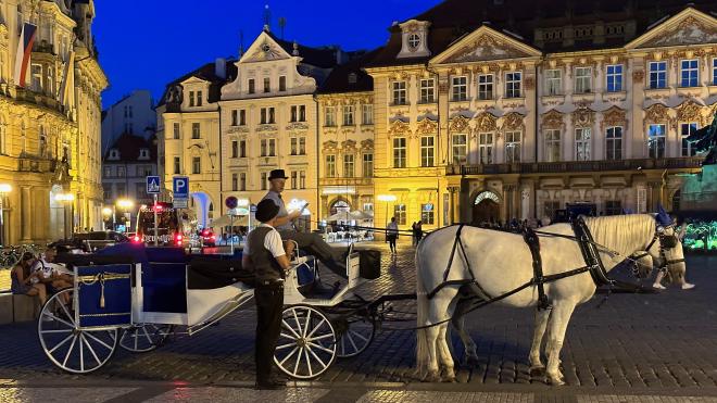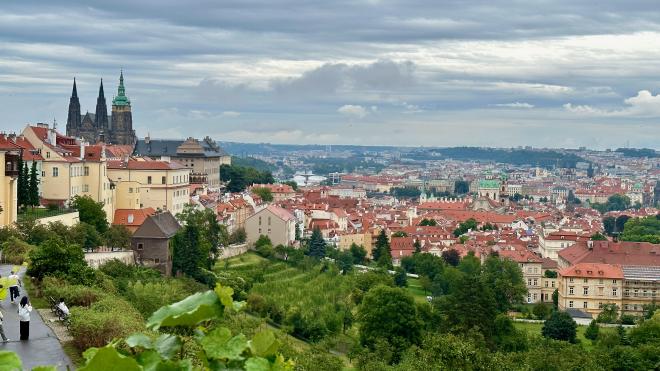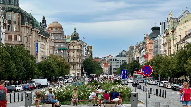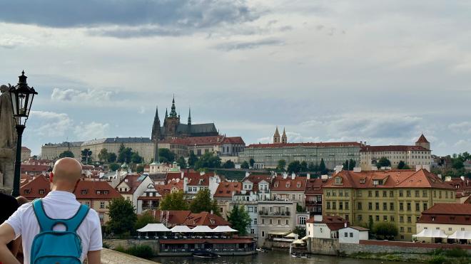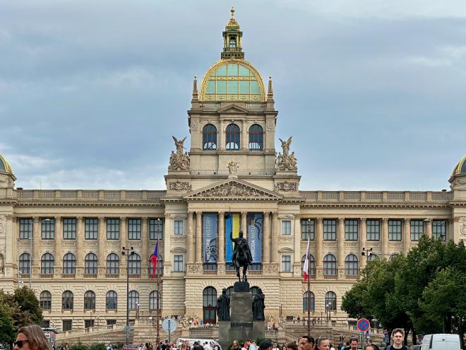 Our first stunning vista in Prague, the Národni Museum, seen on the walk from the train station to our apartment.