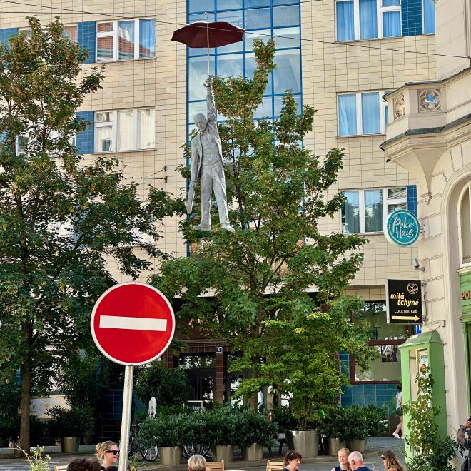 Elsewhere in the city is a third hanging statue, by David Černý, Man Hanging Out, of Sigmund Freud.