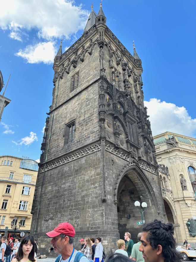 This is one of Prague’s other gate towers, Staroměstská mostecká věž or the Old Town Bridge Tower. It’s at the end of the Charles Bridge between the Old Town and the Lesser Town, which sits below Prague Castle.
