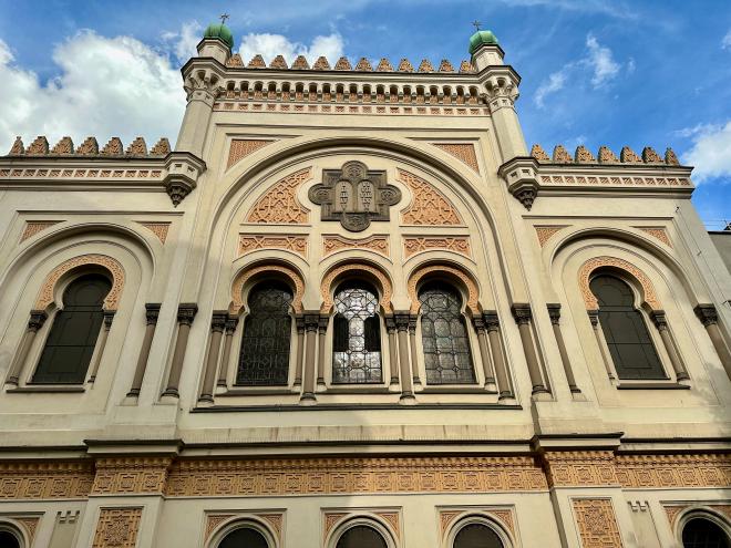 This is Španělská synagoga, the Spanish Synagogue, built in 1867-68 on site of a previous, smaller, synagogue. The name refers to the architectural style, Moorish Revival from Spain.