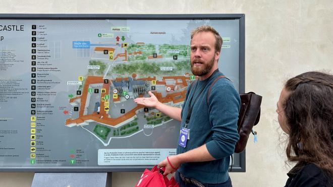 Our afternoon was in two parts. First was the guided tour with Jakub, which took us through the castle complex but not inside any of the buildings, because that requires a separate ticket and a lot more time. Following the tour, we bought tickets for the complex and visited the accessible interiors. To simplify the presentation, we’ll go building by building, exterior and interior, rather than the way we actually did it.