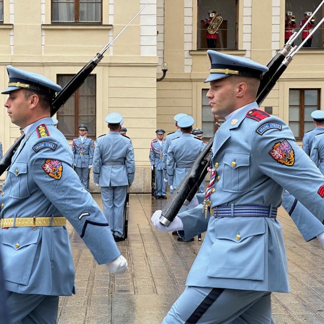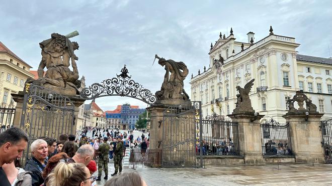 We’d enjoyed our tour with Jan enough that we decided to book another guided walking tour with the same company, this time of Pražský hrad, Prague Castle. After meeting our guide at the metro station below the Castle, we all took a tram to the top of the hill where the tour began in earnest.