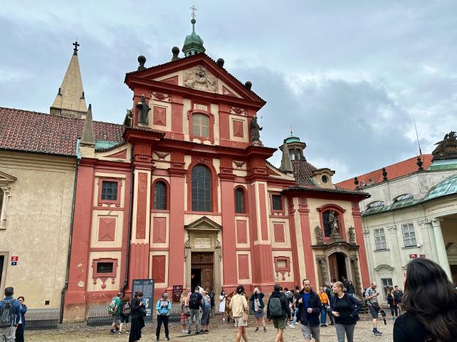 Just beyond the Cathedral is the Bazilika sv. Jiří, Saint George’s Basilica. This is the oldest surviving church building in the castle complex, dating from 920 CE.