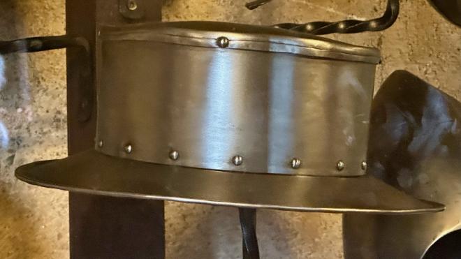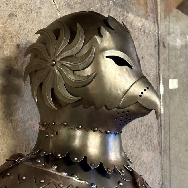 In the wall above Golden Lane there’s an exhibition of armour, spanning the better part of a millenium. This helmet belonged to the famed Chicken Man of Prague. (Actually, Greg made that up. But seriously, what is up with that helmet?)