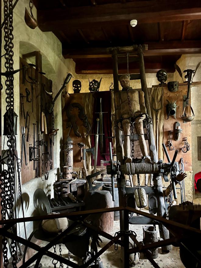 At the end of the armour exhibit is a torture chamber, which looks like No Fun At All.