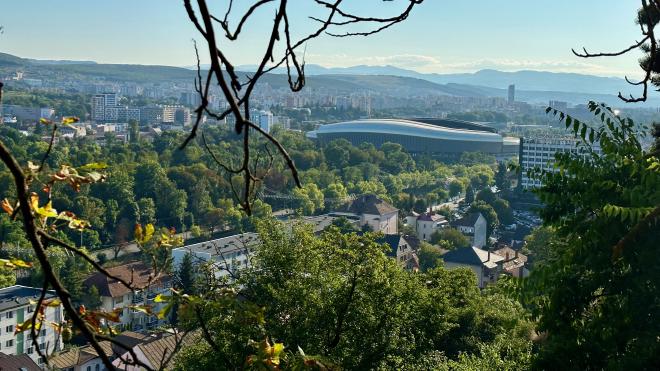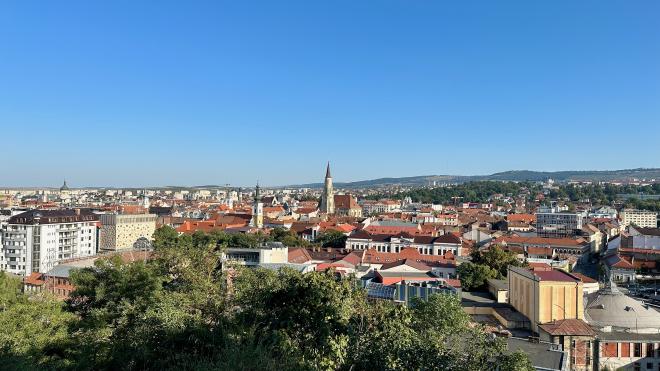 The old city of Cluj-Napoca, viewed from the hilltop.