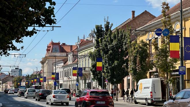 From the square we headed to the Transylvanian Museum of Ethnography, which is dedicated to preserving the rural history of the region. The street out front included this very patriotic display.