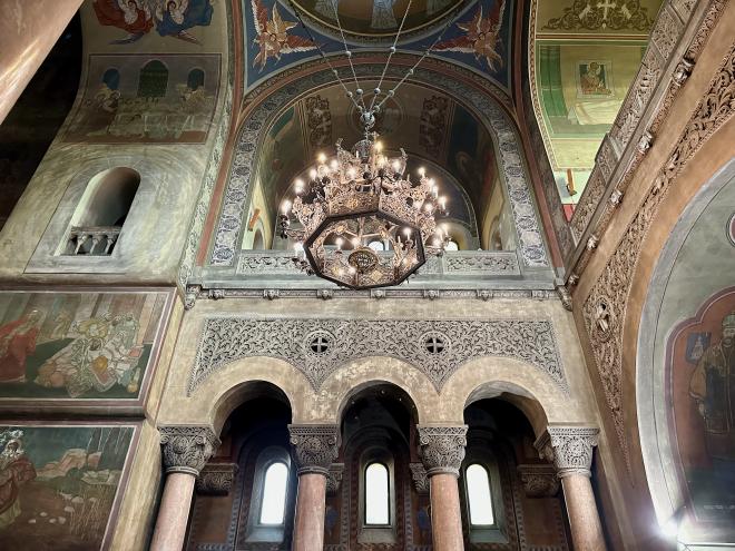From the Museum we went to the other main town square, which is fronted by the Dormition of the Mother of God Metropolitan Cathedral, one of the first Eastern Orthodox churches we saw on our trip. The Cathedral is very tall and narrow, which is typical of the Orthodox style.