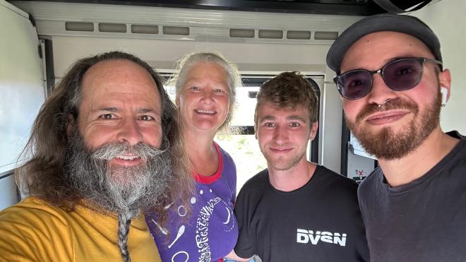 After the seminar (which was a lot of fun and a terrific learning experience) we got a selfie with Craig and his partner Jael. She also works in Functional Juggling, primarily using hula hoops, and was presenting a seminar the following day.