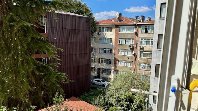 Funda has a degree in Mechanical Engineering but left that field to pursue a career in 3D computer animation. She works for an Istanbul studio that mainly contracts work on Romanian and Indian children’s shows. This is a view from her balcony. Note the varying construction styles of the surrounding buildings, including the brown one that’s covered in sheet metal on the near side.