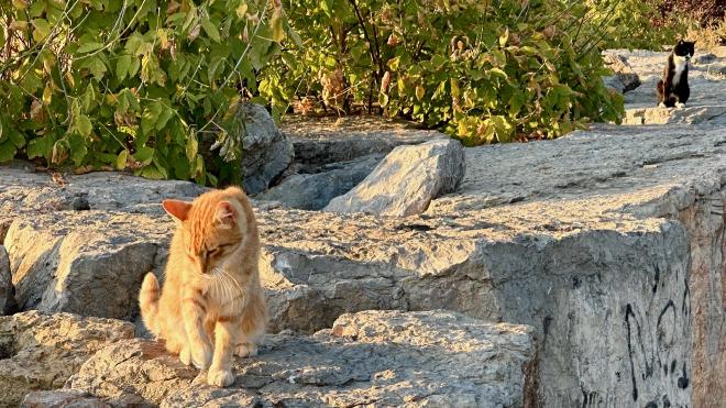 Istanbul is full of cats. Funda has three at her place, two of her own and one she’s minding for a friend who’s splitting her time between Istanbul and France. But there are street cats literally everywhere – as one person said, in Istanbul every cafe is a cat cafe. They’re treated as communal pets, and you’ll find water dishes and food bowls full of kibble all over the city. Some people even capture kittens to have them sterilized and vaccinated before releasing them back onto the streets.
