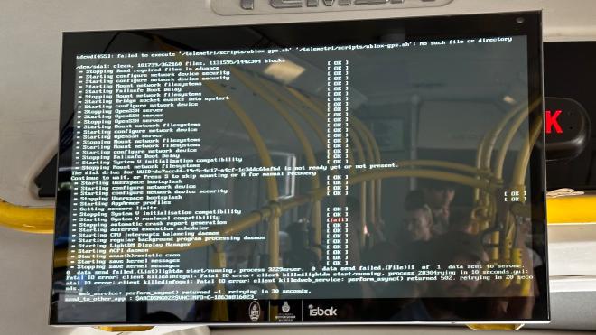 We headed to the Palace using Istanbul’s excellent bus system. At least, it’s excellent once you figure out what a bus stop looks like; the signs are quite small and often a bit hidden. Fortunately, a kind woman who spoke a bit of English pointed us in the right direction at our first stop. Greg was delighted to find that the information systems in the buses run on Linux. Or don’t run on Linux, as in this bus.