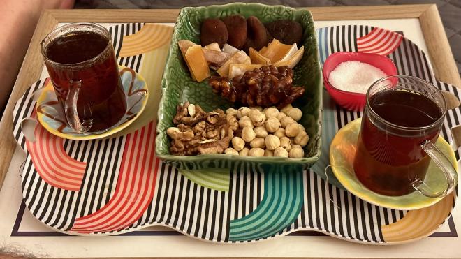 Eventually, after a few navigational errors saved by Google Maps, we made it back to Funda’s. While we were recovering on her couch she brought us this lovely snack. The lumpy bit in the middle is nuts coated in a dry grape jelly, which is a typical Turkish dish. Funda says you can get “terrible” versions anywhere, but this was from her grandmother’s village, where they do it right.