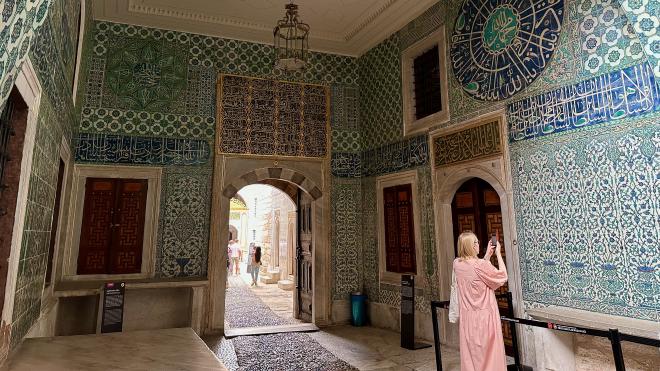 Many parts of the Palace were decorated with beautiful Arabic calligraphy. This is over the main door to the harem and translates as “O believers, do not enter the houses of the Prophet without permission.” Some of the other, equally beautiful, calligraphy recorded prosaic things like the value and source of endowments provided to the Palace eunuchs and other officials – sort of like naming an university faculty after a generous donor.