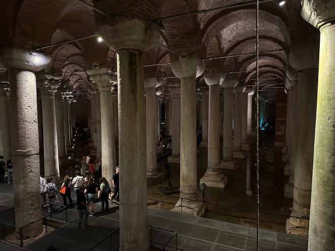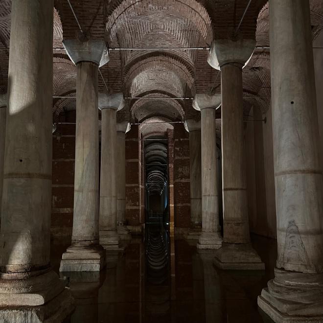 The cistern is about 100 metres long and 55 metres wide, with 336 pillars. Now mostly empty, its water level would have been much higher when in active use.