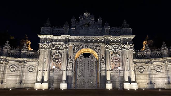 Getting home from the cruise was a bit of an ordeal. According to both Google and the official schedules, we should have been able to catch the last ferry from Karaköy to Kadıköy, but when we got to the terminal it was very definitely closed. So, our options were taxi or the night bus. Being adventurous (and, at least in Greg’s case, contrary) travellers, we decided on the bus. This required us to take the tram back to the cruise dock then walk north about a kilometre to the nearest night bus stop. Along the way we passed the Dolmabahçe Palace, which was quite beautiful in the lights.