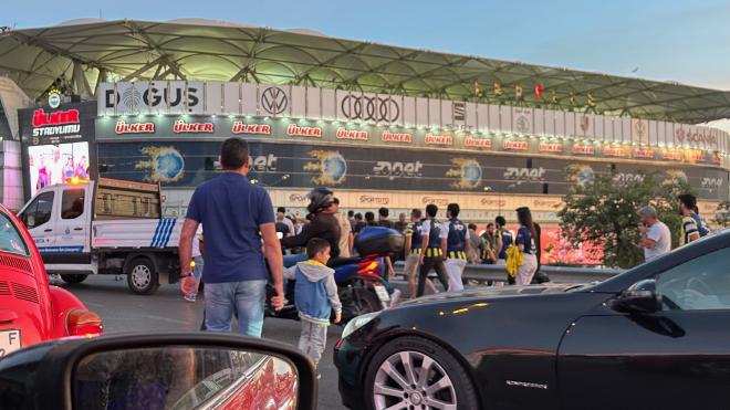 Funda drove us first to pick up one of her friends, and then to the park. Unfortunately, we hadn’t realized there was a football (soccer) match on that evening, and we ended up driving past the stadium just as the crowds were arriving. On our way back, this section of the drive took about two minutes. On the way there, thirty.
