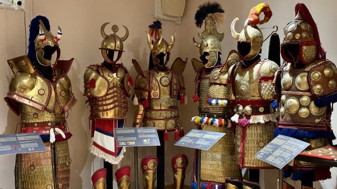 The basement of the museum included a display of replica armour from ancient Greece.