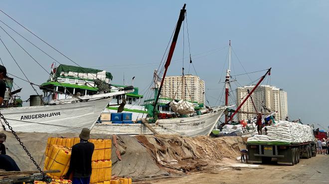 Our first stop was Sunda Kelapa, the old port of Jakarta. The only ships allowed here are pinisi, the traditional Indonesian wooden two-masted sailing ships. These carry cargo to the other Indonesian islands, of which there are over 17,000. All the pinisi have been converted over to diesel power, but there is talk of switching some back to sail, at least partially.