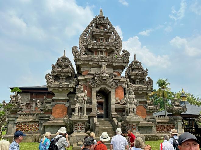 This is the entrance to the Indonesia Museum, which is constructed in Balinese style. It provided a good overview of Indonesia as a whole – and Indonesia is a big, complicated country with a complicated history. One exhibit talked about the planned move (next year!) of Indonesia’s capital from Jakarta, where it’s been since independence in 1945, to Nusantara on the island of Borneo. The official reason is to more equitably distribute economic activity, which is currently very concentrated on the island of Java. The unofficial reason is that Jakarta is sinking.