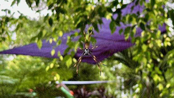 It also has a large population of really big spiders, many of which are quite pretty, assuming you’re not an arachnophobe. This one, a Golden Orb Weaver, was about the size of the palm of your hand, including the legs.