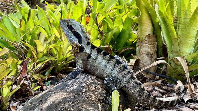 The park is heavily populated with Australian water dragons, who are quite relaxed around the visitors.