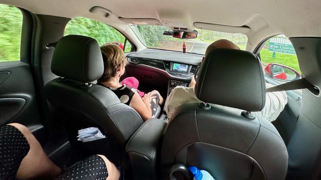 Here’s a selfie of the four of us. We took two shots and realized afterwards that Margaret’s eyes were closed in one, and Karen’s in the other. Margaret won the coin toss.