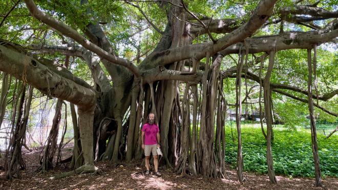 This large banyan tree caught Karen’s eye. Greg for scale, with the sweat on his shirt to prove it was a rather warm day.