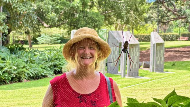 Like Roma Street, City Botanic Gardens is home to quite a few large spiders. Yes, the spider is closer to the camera than Karen is, but not that much closer.