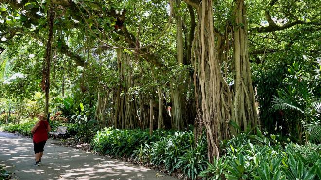 The Gardens included some other impressive banyan trees; Karen for scale this time.