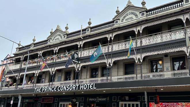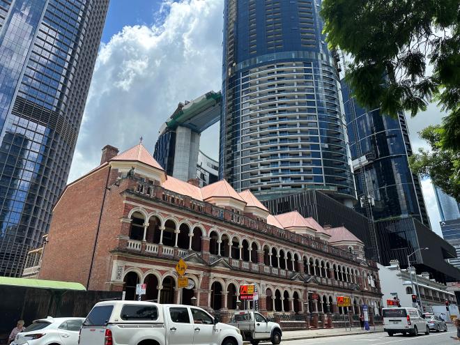 After the opening we wandered the stalls in Brisbane’s very-small Chinatown (one street, one block long, with a few other shops on the side) then caught an early dinner at a nearby restaurant. Along the way we spotted another building very reminiscent of New Orleans.