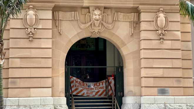 The sculpture above the door to the former Brisbane printing office plays homage to the “printer’s devil”, a term used to describe apprentices in printing shops. The actual origin of the term is unknown, and there are a variety of competing theories on the printer’s devil Wikipedia page.