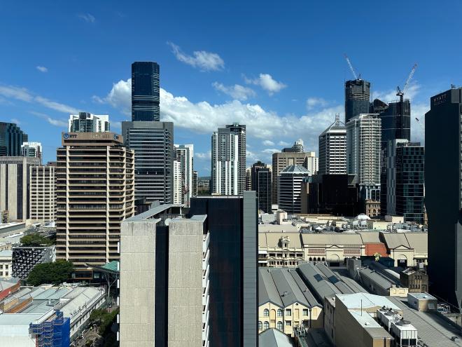 The view of the Brisbane skyline was lovely, despite the clouds.