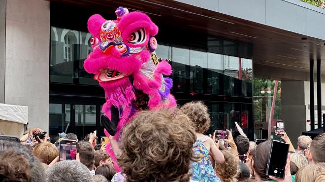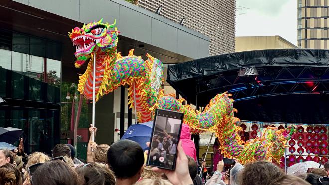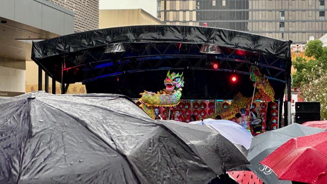 The next day was Brisbane’s Lunar New Year celebrations. It was raining on and off most of the day, but we decided to head downtown regardless to check it out. We arrived just in time for the opening, and this was our view for much of the ceremony.