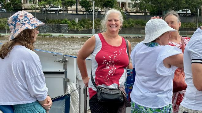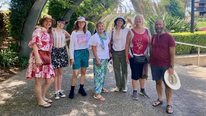After riding the Cat down the river, changing boats, and coming back up, we disembarked on the South Bank Parklands, where a passing couple offered to take a picture of the whole group. We spent some time wandering a craft fair, then had a nice Vietnamese lunch before splitting up to go our separate ways.