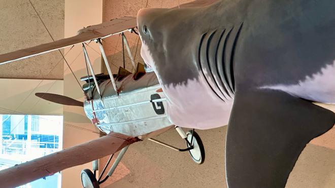 The entry of the museum features a bunch of suspended models of marine animals, as well as a biplane. Greg tried to capture a shot of the plane being eaten by a shark, but wasn’t particularly successful. We’re sharing it with you anyway.