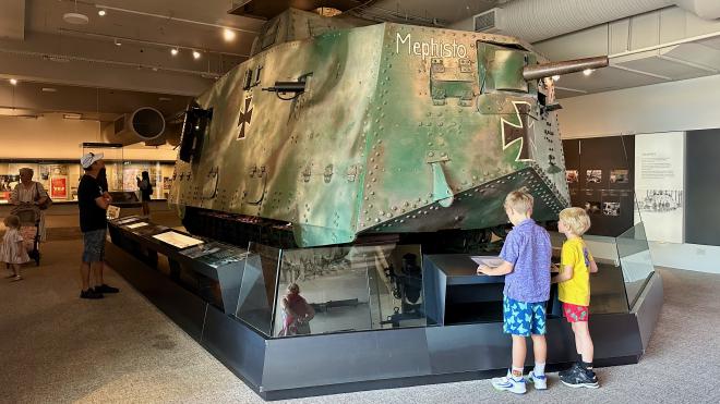 The lower floor of the Museum is the ANZAC Legacy Gallery, which explores how the First World War affected Queensland and its people. One striking element of the collection is the Mephisto, the last remaining German A7V Sturmpanzerwagen tank in the world. The A7V was Germany’s first tank, and featured in the first tank versus tank battle in history, in April 1918.