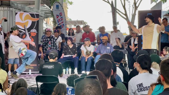 The battles were in three categories: Hip Hop, Popping, and Open Style. We’re not actually that knowledgeable about these dance forms, but we had a lot of fun watching, regardless. We were already familiar with the dance battle style of competition, as jugglers have co-opted it for club juggling and diabolo competitions. These are two of the competitors in the Open Style final.