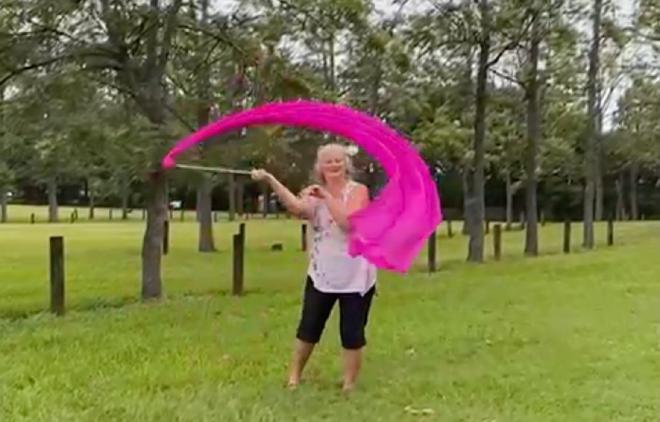 While Greg and Nic were passing, Karen did some poi swinging and Margaret, Chez and Jasmine watched and chatted. Unfortunately we were chased back to Rob’s by some rain a bit earlier than we’d hoped. And same apologies here as for the previous photo. (CT)