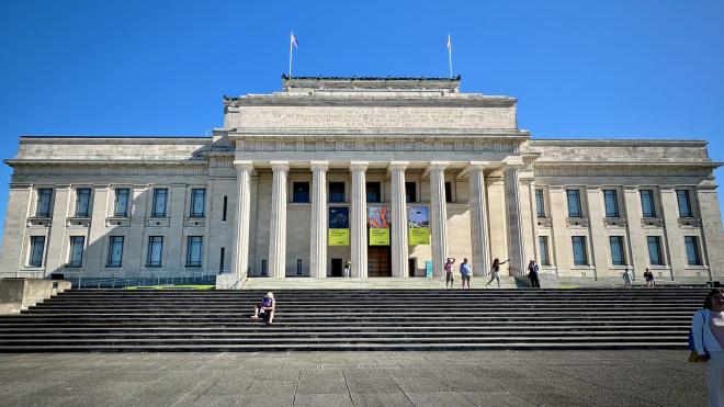 After a late breakfast, we walked through the city centre to the Auckland Domain, which is a large public park on the hill left by the extinct Pukekawa volcano. Our destination was the Auckland Museum.