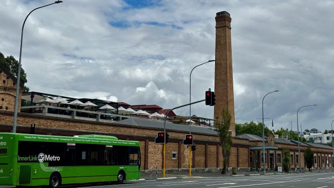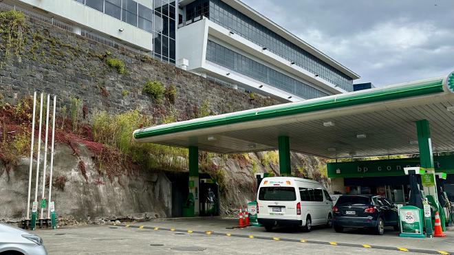 And this, of course, is what an Auckland local would call a petrol station. But it’s not the petrol station that’s interesting, it’s the wall behind it, which is a remnant of the original Auckland seawall. The location is now over one hundred metres from the nearest water, and five hundred metres from the open harbour.