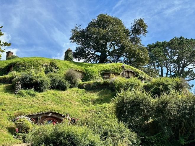 And here we are, delighted to be in the Shire. Bilbo’s home is just visible – the green door under the tree at the top left of the picture.