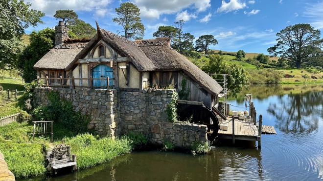 Anyway, given all that, there was really no question whether we’d be visiting the number one shrine to Peter Jackson’s Tolkien movies in all the world: the Hobbiton Movie Set. This is located near the town of Matamata, about 170 kilometres south of Auckland, so it was onto an early morning bus and off to the Shire for a visit and lunch at the Green Dragon.
