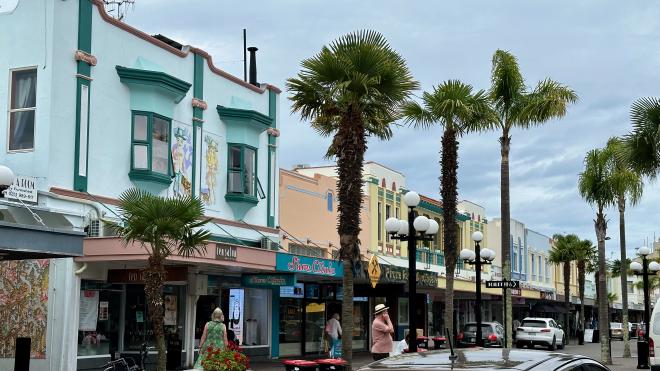 Napier is known for the Art Deco buildings in its CBD. These were all constructed as part of the rebuilding of the city following the disastrous Hawke’s Bay earthquake of 1931. We’d ventured into town partly to make one of our very rare purchases on this voyage: some sweaters made from a blend of of merino wool, possum hair, and silk. Merino sheep are found primarily on New Zealand’s South Island and their wool is renowned for being very fine and soft. The common brushtail possum is a protected native species in Australia, but in New Zealand it’s an unwelcome invasive pest that preys on New Zealand’s ground-dwelling birds. Possum hair is hollow, which makes it extremely warm.After being in continuous summer since last June, we knew we’d be needing additional layers as we headed further south into the cold of New Zealand’s autumn.