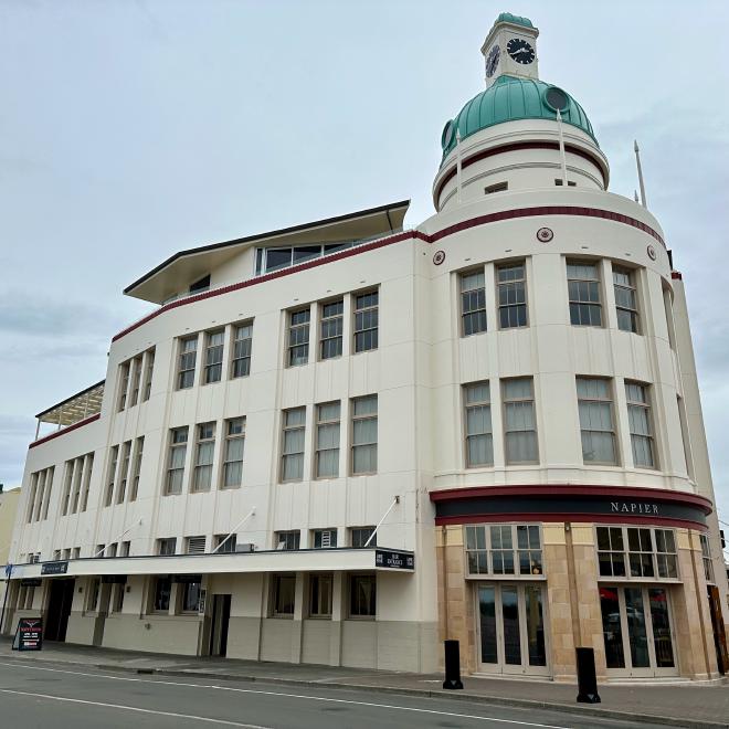 We did make one excursion into Napier, aided by the loan of Etty’s car (thanks!). After a quick stop at the i-Site (which is what tourist information centres are called in New Zealand), we parked beside the Marine Parade Foreshore Reserve, near the central business district (CBD).