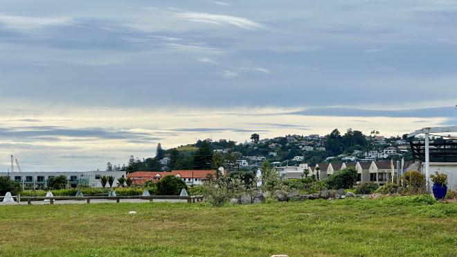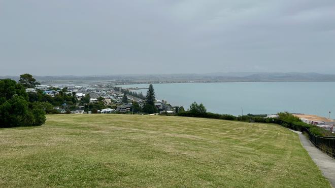 This is the view west and north up the coast from the lookout. The low-lying land you can see past the bend in the bay rose out of the sea during the 1931 earthquake. This now includes Napier’s airport. Etty’s house is towards the right edge of the picture.