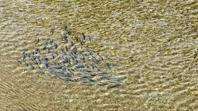 We walked back down the hill and along the river towards Nelson’s Queens Garden. Along the way we spotted a few schools of fish.